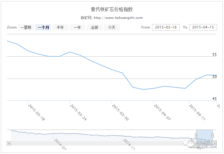 普氏指数Platts 62%:50.75 (-),月均价48.6;
